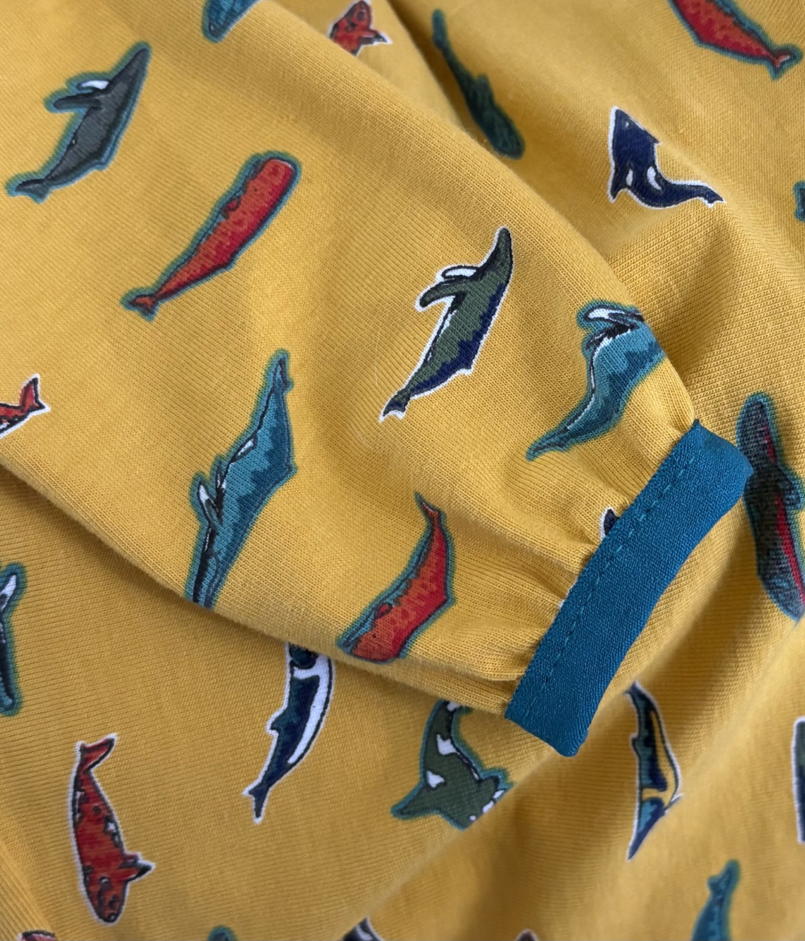 Cotton Jersey Stretch Onesie – Mustard Gold With Whales